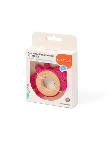 BabyOno: Μασητικό από μαλακή σιλικόνη και ξύλο -Πεταλούδα